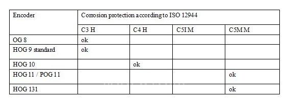根据国际通用标准ISO 12944, 我们列出我司几款编码器的防腐标准