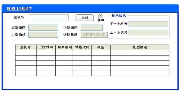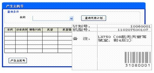 如:31000001(三装+2010年+00001主机序号),主机号产生后,即产生主机上线预备队列,数据保存到分装线生产表