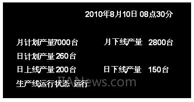 LED显示MES系统的生产实时统计数据和用户定义消息。生产信息包括指定的生产汇总信息、计划产量信息,实际产量信息。用户定义消息,提供用户输入的欢迎消息。LED信息格式: