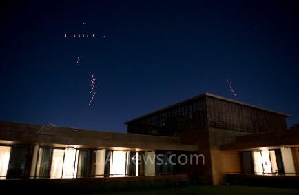 3月20日晚,在利比亚首都的黎波里市中心,利比亚防空部队发射的炮火射向夜空