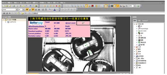 同时,事实证明,康耐视强大的PatMax工具可以轻松应对活塞的“骨节”特征查找,即使活塞毛坯面反光有一定的差异,有倾斜发生,PatMax工具依然可以准确定位;再加上In-Sight视觉软件强大的图像预处理算法及计算处理能力,可以按照“骨节”凹槽的初定位(获取X值、Y值),之后在凹槽的两侧,判别小凸台的位置,即凸台在凹槽左边还是右边来判别0°角度和180°角度。这样,就可以准确地反映工件的中心坐标及角度。