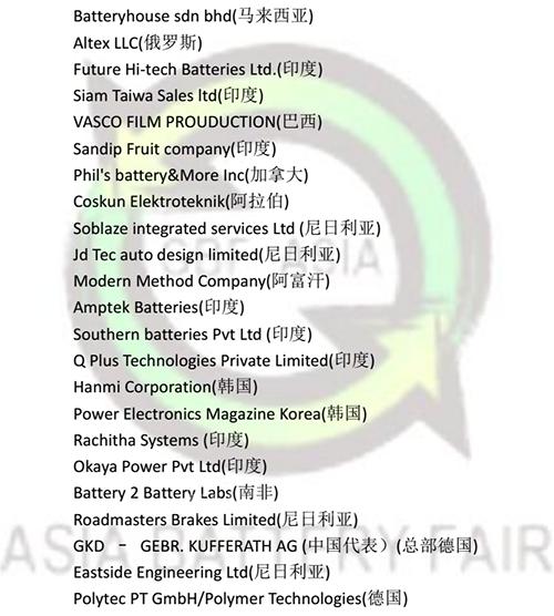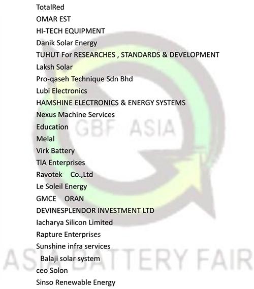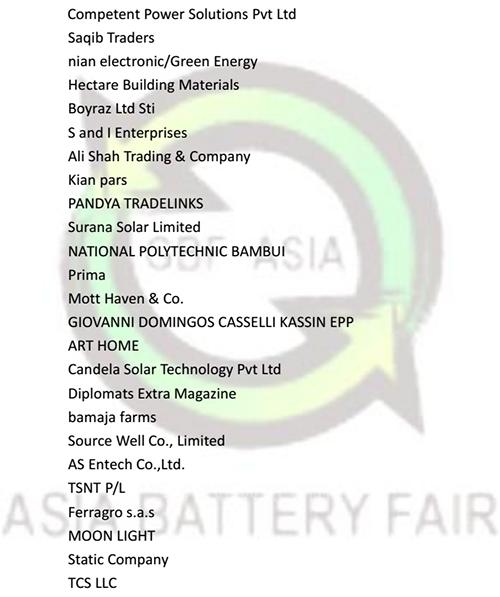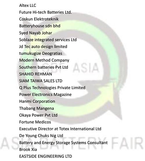 从全球电池生产份额来看,中国电池制造商已经处于领先地位。由此可见,在电池制造领域,中国的优势日益明显。许多国际企业负责人纷纷表示看好未来中国电池市场,希望借助展会这一平台进入中国市场,在中国千亿元级电池市场中“分一杯羹”。作为全球领先的电池采购交易平台,亚太电池展吸引了大批国际企业前来参展,目前已有大量海外优质采购商分别通过网站后台、邮件、社交平台等进行了参观登记,以下为部分采购商名单: