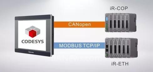 iR系列搭配不同的耦合器可连接不同的标准通讯总线,如:CANopen/MODBUS(TCP/IP),标准的通讯协议可兼容目前主流控制系统。