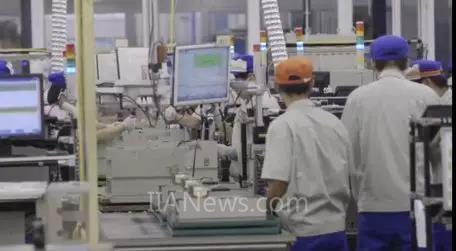 车间里每一个工作台旁边都有一串彩灯,蓝灯表示正常工作中;黄灯代表正在休息;红灯表示出现故障。管理人员一眼就能看出整体工作情况,而出现红灯故障时,技术人员也能第一时间处理。
