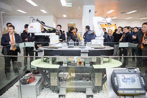 在贝加莱(中国)办公室大楼,三组SuperTrak和ACOPOStrak配合ABB SCARA和关节机器人所搭建的演示系统,真实的演示了“数字孪生”场景、快速汇流、抑制波动、平稳过弯、协同工作等工作场景,正如Robert Kickinger博士强调说“数字孪生技术使得在您的产线未安装之前就可以对整个生产过程进行验证,工艺参数进行优化,这是风险极低的投资,另一方面,产线的开发测试周期会大幅度缩短,它不仅灵活的生产,自身也是非常灵活的装配和测试”。