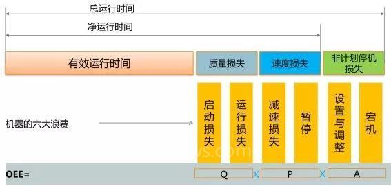 影响OEE的因素非常多,正如图3所示,OEE由可用性、性能、质量三个维度的要素构成,对于制药行业而言,由于订单的变化,都会造成设备的设置与调整时间、非正常宕机对可用性带来较大的损伤,而频繁的更换也会带来启动与运行中的损失,造成较大的重新开机浪费—这往往意味着OEE的下降。