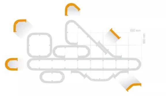 图6显示了ACOPOStrak非常灵活的组织,多种轨道形式,直道、45度、90、180度的弯道可以让生产的组织比较灵活,而关键在于“他们可以复用”—当产线进行调整时,这些轨道可以被重新组装适应变化。