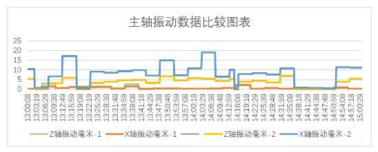 邦纳的振动温度传感器直接输出振动的均方根速度值,符合国际标准ISO10816,完全可以打消用户的这层顾虑!下图是某国内大型合资车厂冲压车间压机线主轴电机的正常和异常数据比较,1号监测点正常,2号监测点异常,振动数据增大明显,可以直观判断其主电机异常!