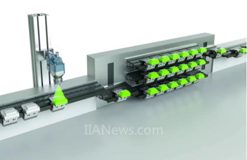 XTS Track Management 为创建适当尺寸的零件缓冲区(中心)提供了理想的基础,同时将设备占地面积减至最小