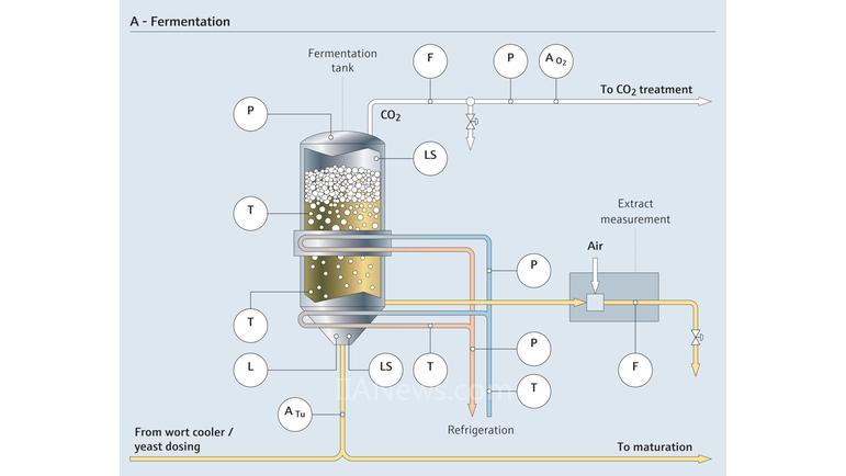 ●发酵的目的是生产酒精。基于实际酵母状况控制氧气进气量,实现最优酵母生长速度。