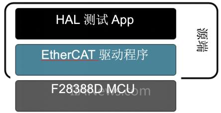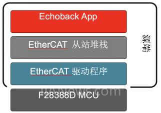 图3:包含ETG从站堆栈的F28388D EtherCAT回送解决方案