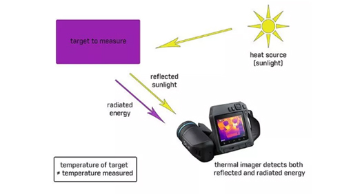 反射温度会影响热像仪测量的温度(除发射率是影响测温结果的重要补偿参数,环境反射表象温度对测温结果影响也是至关重要的!),如果附近的热源(如变压器,电动机或者反射阳光中的红外波段能量)从物体表面反射出去,物体可能会很冷,但根据热像仪显示的温度却高得多。