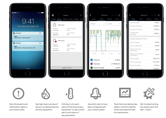 Thermal IQ平台包括无线蜂窝网络连接,移动应用程序和企业级高级视图分析组成,可将燃烧设备安全地连接至云端,使客户可以随时随地通过任何智能设备或桌面客户端访问燃烧工艺过程的关键数据。