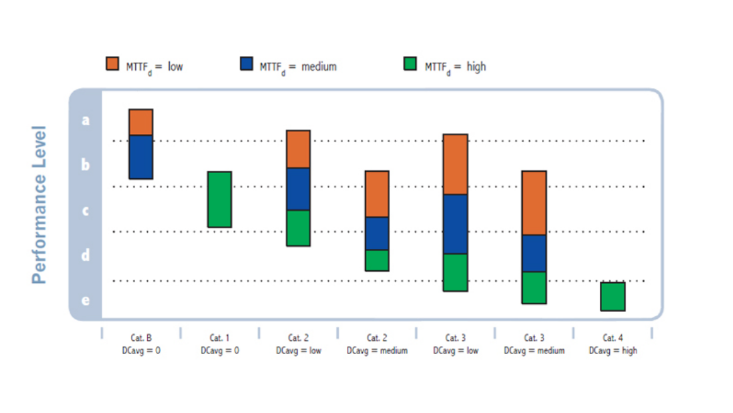 通过下图Category、MTTFd、DC,与可靠性等级PL之间的关系,可以判定PL值。