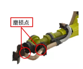 材质方面,CPP管线包的最大特点是使用塑料件作为外护套,塑料件具有空气老化特性和低温脆性,因此波纹管相关的塑料件被认定为易损件。SDP管线包使用防磨布和弹簧作为外护套,不存在空气老化特性和低温脆性,对于使用环境比较恶劣,或者是中国北方冬天供暖措施不足的工况环境下SDP的寿命会更好,但SDP防磨布存在光老化,同时也和波纹管一样会因与机器人或管线包的支架、法兰之间的接触产生磨损,因此防磨布也被定义为易损件。