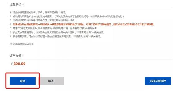 4.点击【提交】按钮,在线支付成功后,即完成报名。