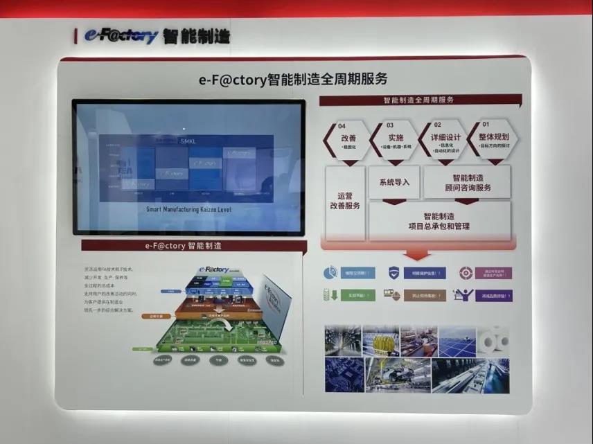 三菱电机现场展示了基于百年制造经验所打造的e-F@ctory智能制造解决方案,灵活运用FA技术和IT技术,透过实时数据的精准采集、边缘处理、高效传输和科学分析,实现生产管理的可视化和持续改善,助力制造企业减少开发、生产、保养等全过程的总成本,由智能制造促进社会的可持续发展。