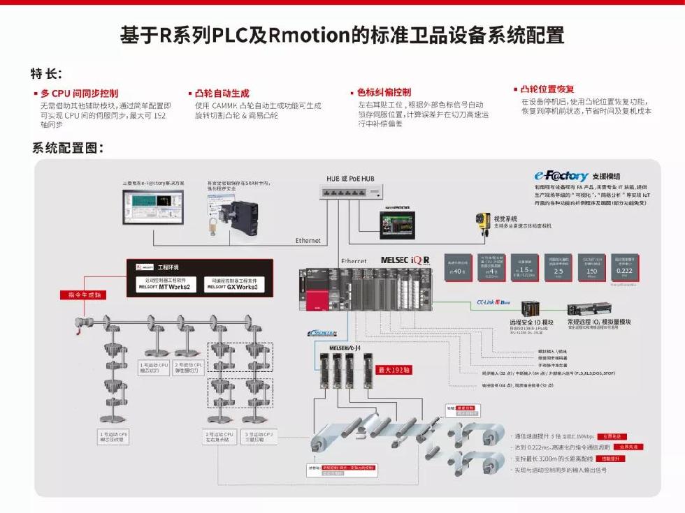 三菱电机本次展会带来了具备最新iQ-R系列PLC及运动控制CPU的卫品设备解决方案亮相生活用纸展。