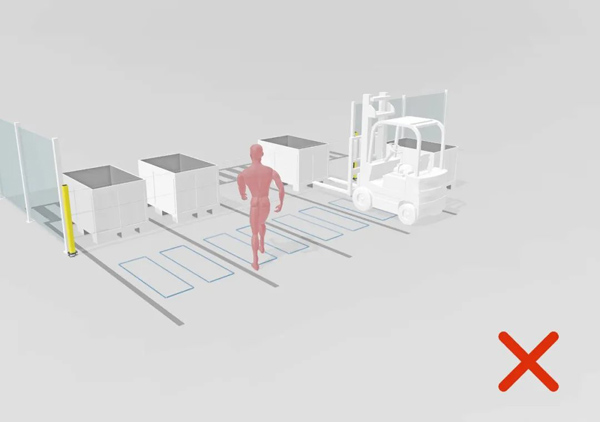 劳易测现可提供一种适合叉车物流转运站的智能安全概念:通过序列和时间监控保护区域。该方案能够可靠地辨别叉车与操作员。叉车出入区域时不会中断操作,且所有站点能够同时独立运行。