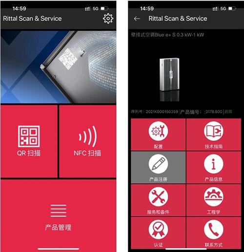 2、手机app,同时支持扫描标签二维码,查看机柜、空调、冷水机等威图产品信息