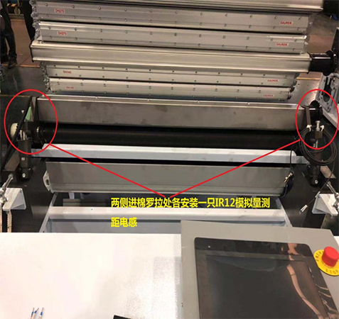 为保证测量的准确性,以及两侧进棉罗拉的稳定平衡,两侧的进棉罗拉处各装配了一只IR12模拟量电感。
