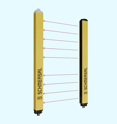 SLC/SLG 440COM系列安全光幕和光栅作为区域防护装置被用于机器人工作站。可选屏蔽功能,可用于在不停用安全光栅的情况下,输送材料进入或离开工作区域。
