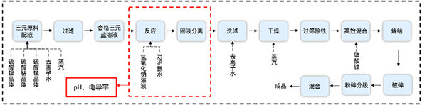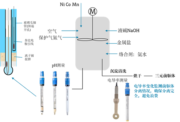 在锂电池的生产工艺过程中,正极三元材料生产线采用了大量在线pH仪表检测来控制药剂的投加,精准的pH检测能够为客户降低生产成本,从而实现更高效的过程控制。