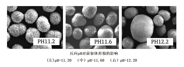 通过调节pH值,可以控制一次晶粒和二次颗粒的形貌。pH值对前驱体的生长过程有重要影响——反应过程中,pH值的大小及稳定性将直接影响前驱体的粒度分布。若在反应过程中pH值失控,出现过高或过低的情况时,会使电池品质急剧下降,甚至报废。