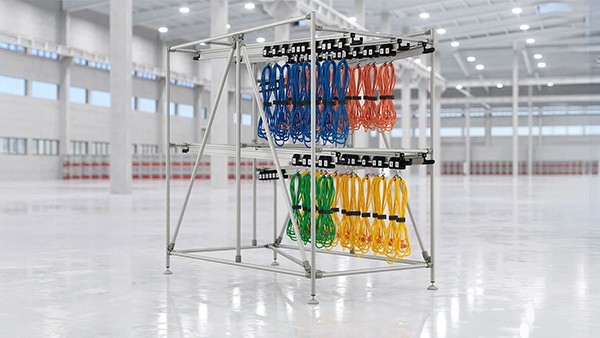 尤其是敏感的零部件,比如电缆线束,我们的悬挂输送带系统可以更小心地运输。因为这类零部件形状特殊,如果用标准料盒运输,很容易出现缠绕或损坏的情况。但使用依诺信的悬挂输送带系统就可以自由悬挂,并且安全无损地到达指定位置。这样就能减少废品的数量,并确保物料流高效且没有瑕疵。