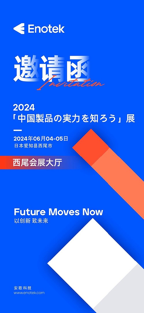 6月4日-6月5日,安歌科技Enotek将亮相日本2024「中国製品の実力を知ろう」展,与众多日本制造业企业共同探讨和展示中国制造的创新成果。
