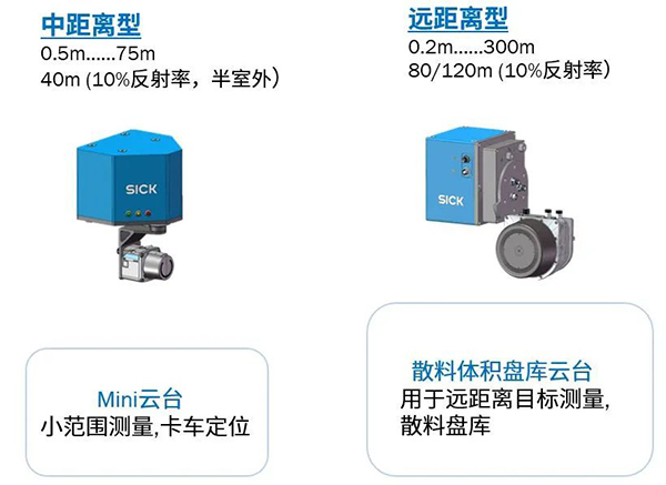 SICK单线激光雷达LMS5xx、LRS4581、LD-LRS36x1,可根据扫描距离,扫描精度进行不同的方案选型,同时也可以搭配SICK云台进行数据拼接,实现3D点云数据。