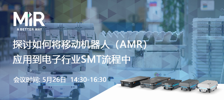 MiR希望通过本次网络研讨会,分享一些典型的移动机器人在SMT的应用实例,帮助电子行业的用户找到快速落地的物流优化方案。