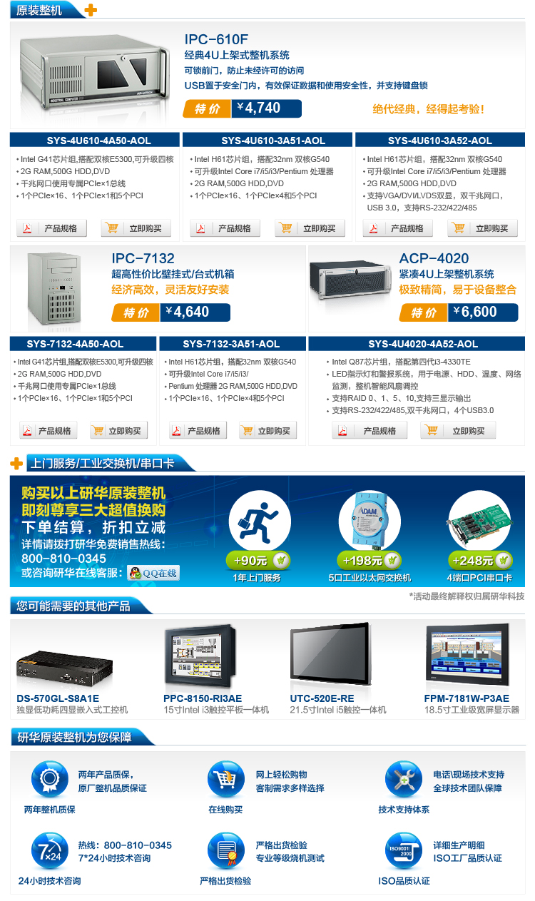 研华售前咨询专线:800-810-0345 | 研华售后技术专线:800-810-8389