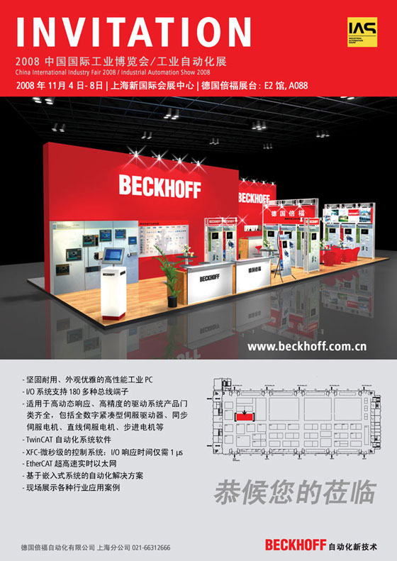 德国倍福自动化有限公司 上海分公司:021-66312666 shanghai@beckhoff.com.cn 北京代表处:010-66210991 beijing@beckhoff.com.cn 广州代表处:020-38010300 guangzhou@beckhoff.com.cn | ||
