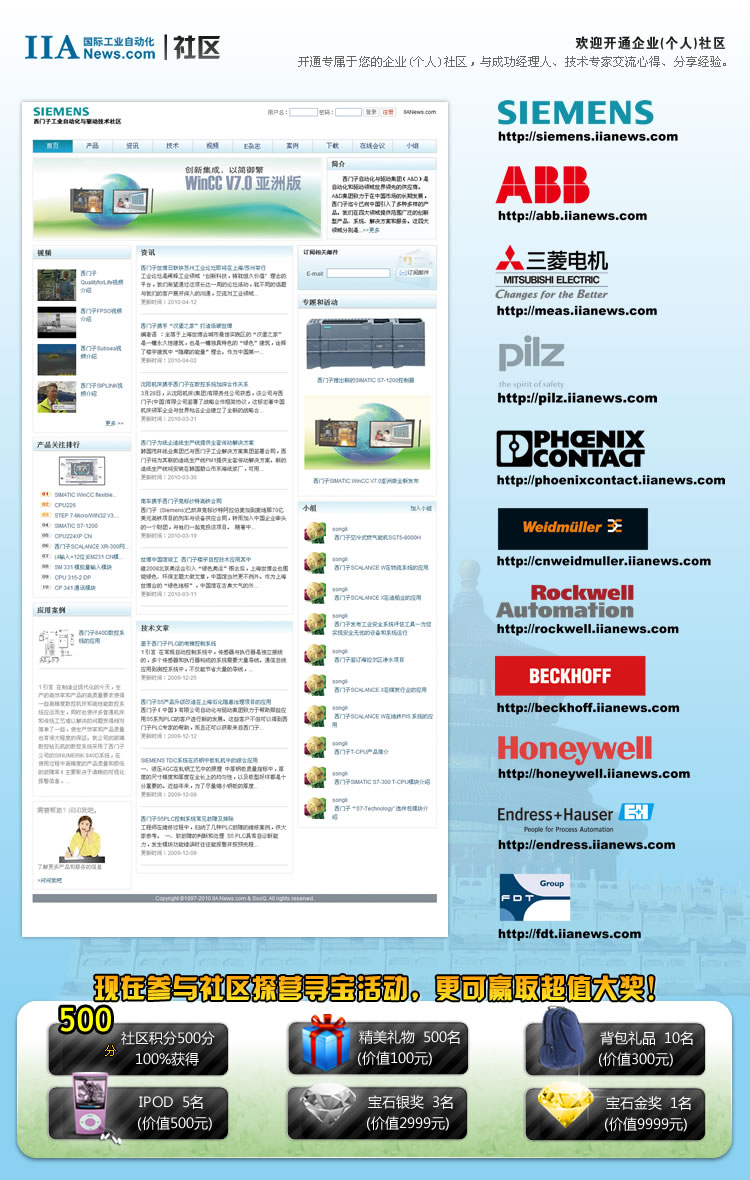 国际工业自动化社区 西门子工业自动化与驱动技术社区 ABB中国技术社区 三菱电机社区 pilz中国技术社区  菲尼克斯电气社区-工业连接-无线通讯 魏德米勒 电联连 Weidermuller 罗克韦尔自动化中国技术社区倍福中文技术社区 霍尼韦尔社区(Honeywell) Endress+Hauser中文社区 FDT中国技术社区 立即参加社区探营寻宝活动