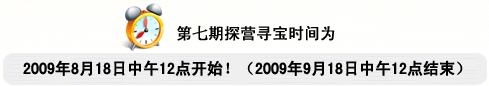【奖品发放安排】 第六期探营寻宝中奖通知,将于2009年8月21日通过短信/邮件/电话等多种方式传达,寻宝奖品将于2009年8月24日为网友邮寄。 |