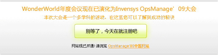 如果对OpsManage'09大会有任何疑问, 请通过电子邮件联系我们 yvonne.leong@wonderware.com