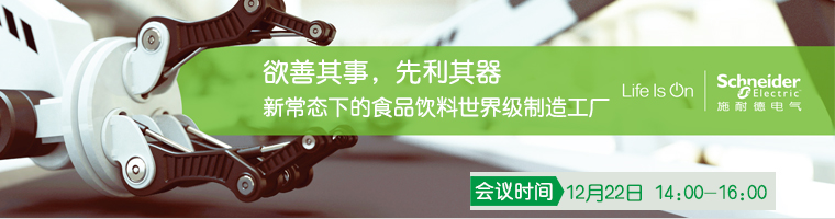 会议介绍 2015年是"中国制造2025"发布的元年,也是即将迈入"十三五规划"的一年。未来的中国制造业将向创新驱动、智能升级及全球化竞争全面进军。建设以个性化定制为驱动的智能制造,打造以互联互通为基础的智慧工厂,将为我们成功开启工业智造转型之门,迎接扑面而来的新工业革命。 对于食品饮料行业而言,面临着诸多挑战:包括如何满足更广泛人群的需求,如何销售更健康安全的产品,如何适应消费者不断变化的饮食习惯,如何应对原材料供应及能源成本的频繁波动,以及如何设计环境友好型的工厂和供应链。 作为全球能效管理和自动化领域的专家,施耐德电气将助力食品和饮料企业提升可持续性、运营效率和可追踪性,实现可持续的高效运营。 会议时间:12月22日 14:00-16:00