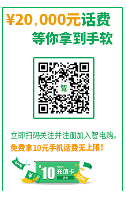 现扫描右侧二维码关注「智电购」并注册会员,即可领取10元话费;此外,每成功邀请一位同行好友加入还能领取10元话费,次数无上限!