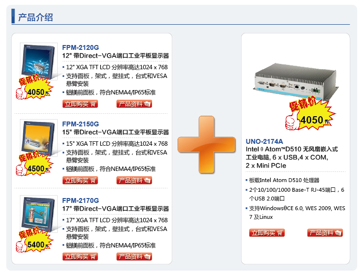 | 为满足广大客户强烈需求,研华隆重推出“工业平板显示器FPM-2000系列和嵌入式无风扇工业电脑UNO-2174A”精锐新组合。该组合结构小巧,安装灵活,特别在运行??可靠?抗震?低?能方面表现优异?研华FPM-2000系列是LCD工业平板显示器,带有强大的触摸功能,方便现场操作,是LCD显示器市场中?竞争力的系列产品之一。UNO-2174A是一款内含英特尔凌动处理器的无风扇嵌入式工业电脑,具有丰富的通讯接口,另具有IP40防尘等级认证?10 ~ 70° C宽温运行等特性,功?更低、?能更加卓越? |