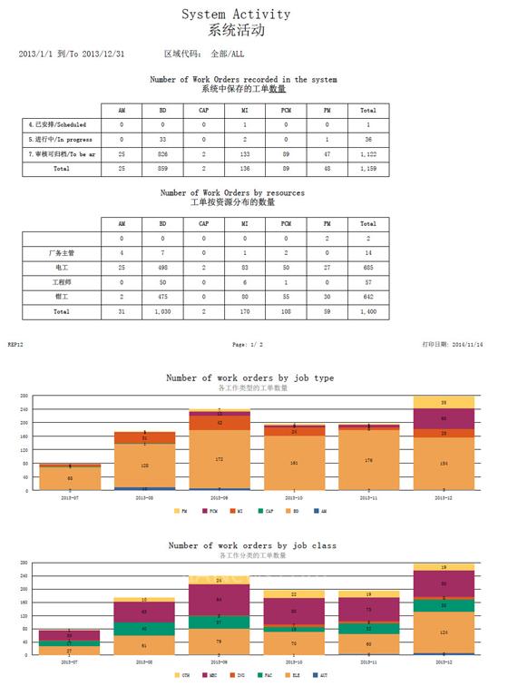 标准报表包是从不同角度监督相关维护指标的有效工具,以下介绍其中典型的几个报表供参考: