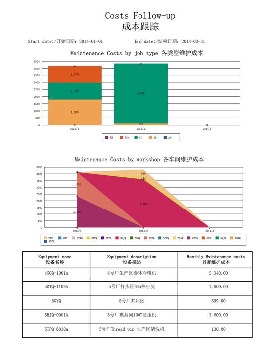 成本跟踪:根据维护工作的类型和维护成本展示和跟踪各个车间的维护成本。