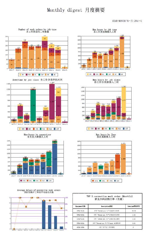 月度摘要:该报表可帮助总经理和维护主管更好地理解企业目前的维护管理水平及趋势。