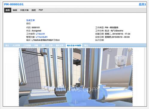 在工作指导和工单界面中可以直接查看相关设备的3D模型以便协助工作准备。
