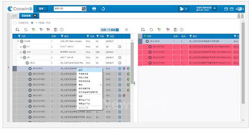 在全新的Coswin 8i中,设备结构功能被重新定义和优化,传统的设备树结构被表格形式所取代,以地理位置或技术参数来呈现每一条/个设备对象。而设备列表还可以按区域、功能或者类型进行自定义筛选。