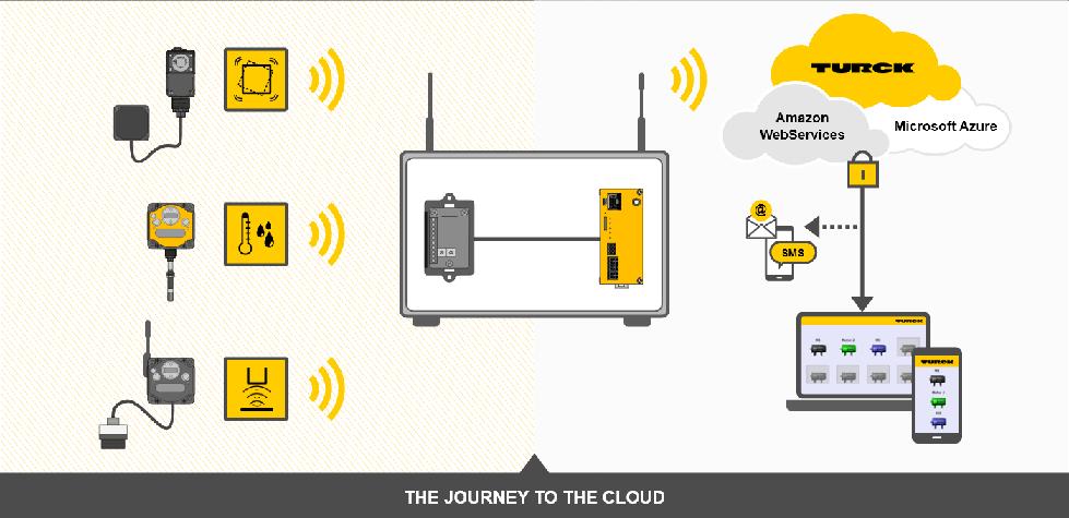 该网关可以执行对数据的分布式分析,且数据也可在云端分析。图尔克的工业云支持创建个性化的操作面板、查看历史趋势以及配置自动化电子邮件或SMS消息。TCG20网关还支持Amazon Web Services和Microsoft Azure云平台。
