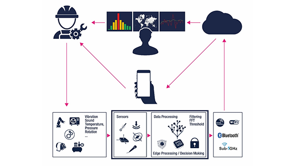 作为工业 4.0 的重要组成部分,本地决策系统在设备内或附近收集传感器数据,以此为依据做出正确判断,帮助检修人员提前发现昂贵、复杂的可能是远程设备出现的小问题,避免酿成大事故。这个功能要求传感器必须具有边缘处理能力和人工智能 (AI),因为人工智能是预测性维护应用的关键技术。通过直接在传感器或主控制器上实现AI 和边缘处理,例如,STM32中的 FP-AI-MONITOR1,可以在本地执行数据分析决策。