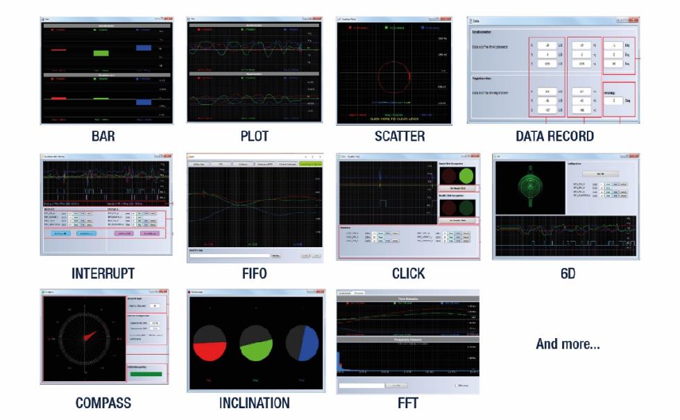 意法半导体等传感器厂商提供免写软件的评估套件(图6)。这些小主板,例如,STEVAL-MKI109V3,具有插接传感器板卡的插座。设计人员可以选择把喜欢的传感器板卡插到主板上。有些厂商还提供用于控制传感器的图形用户界面 (GUI)软件。这些GUI软件可以存取传感器的全部寄存器,配置和检索数据,不用写代码,并提供实用的数据处理运算功能,例如,傅里叶变换FFT 就是其中的一个功能(图7)。