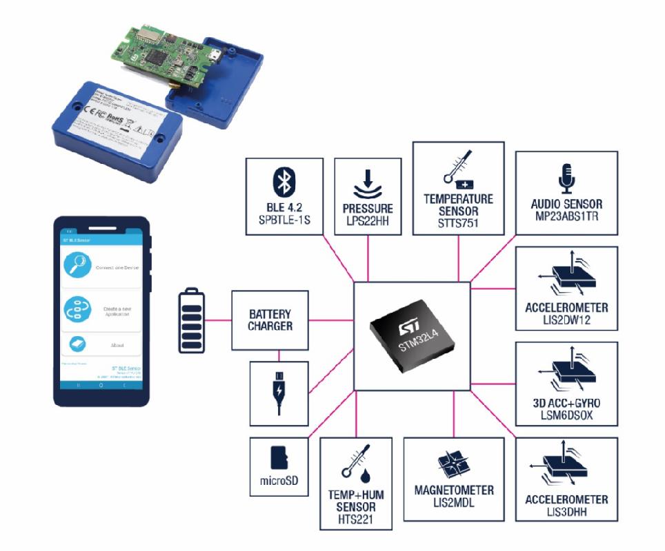 若评估传感器的特性功能及其适用性,建议使用免写代码的评估板。这些板卡还可以执行初始数据采集,启动工程算法和数据分析过程。如果到了后面的原型开发或概念验证阶段,传感器厂商可能会提供另一个强大的开发工具,以大幅简化开发任务,缩短开发周期。以STWIN 开发套件为例: