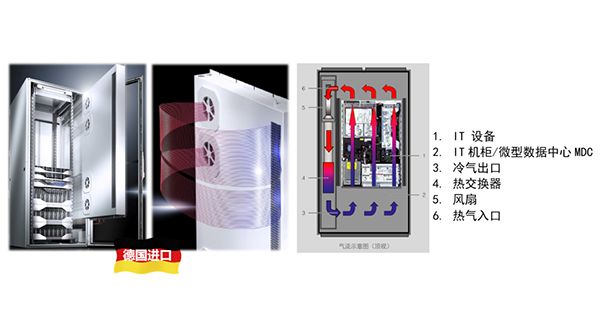 LCU直接集成安装于机柜内部侧面,结合威图TS IT 800mm宽机柜或MDC安全机柜,轻松实现0U末端制冷。LCU直接向服务器进风面送风,并从服务器排风面回风,搭配密封组件,消除热点隐患,同时空气冷却优化路径,效率至上,“超算场景级别”的冷却方式。分体式设计,热量通过室外机排放至室外侧,避免机房热量积聚,无需通风,也无需额外配备房间空调,一站式解决方案。